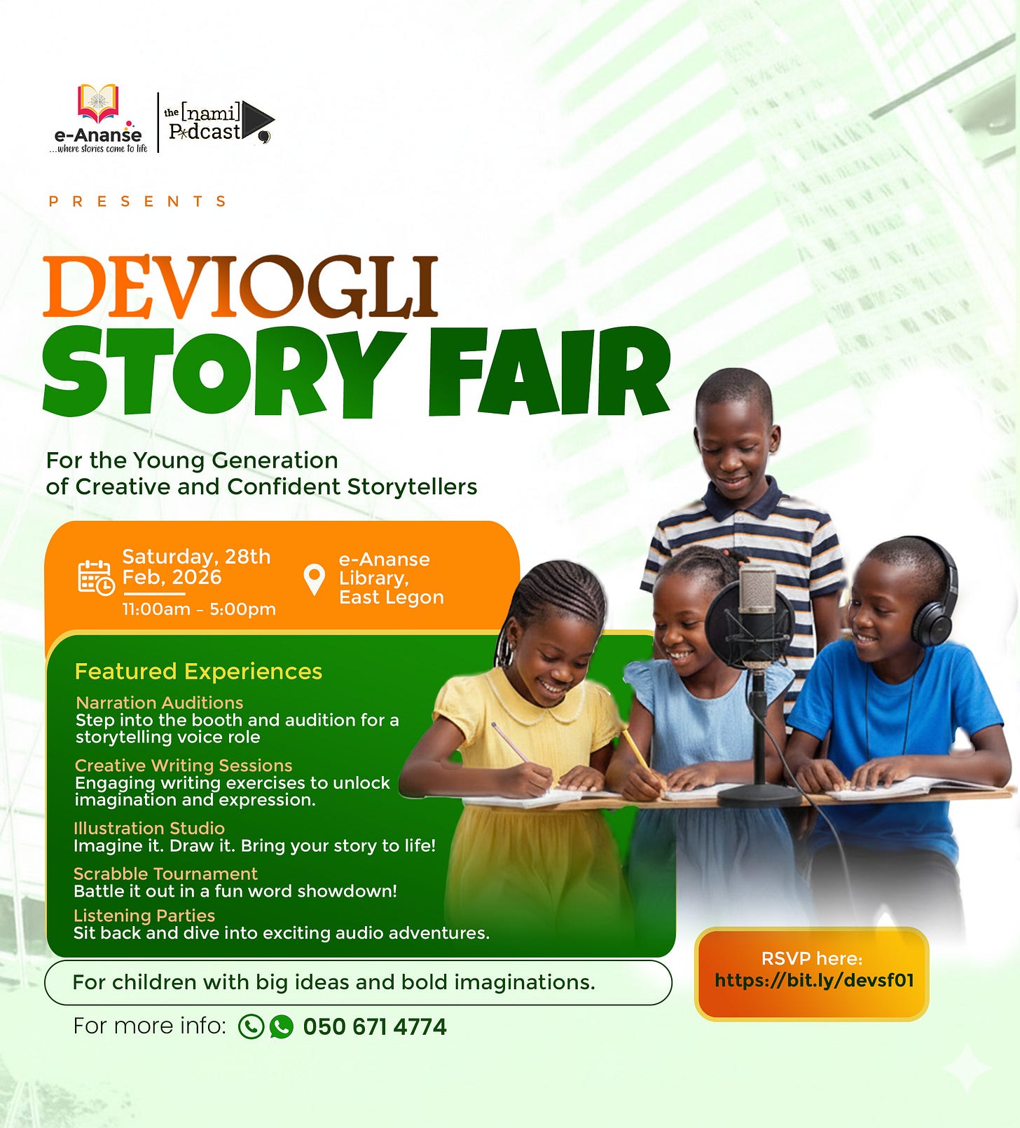 Bring your child on Saturday, 28 February, to explore writing, illustration, narration, and loads of creative fun at e-Ananse Library, East Legon.
